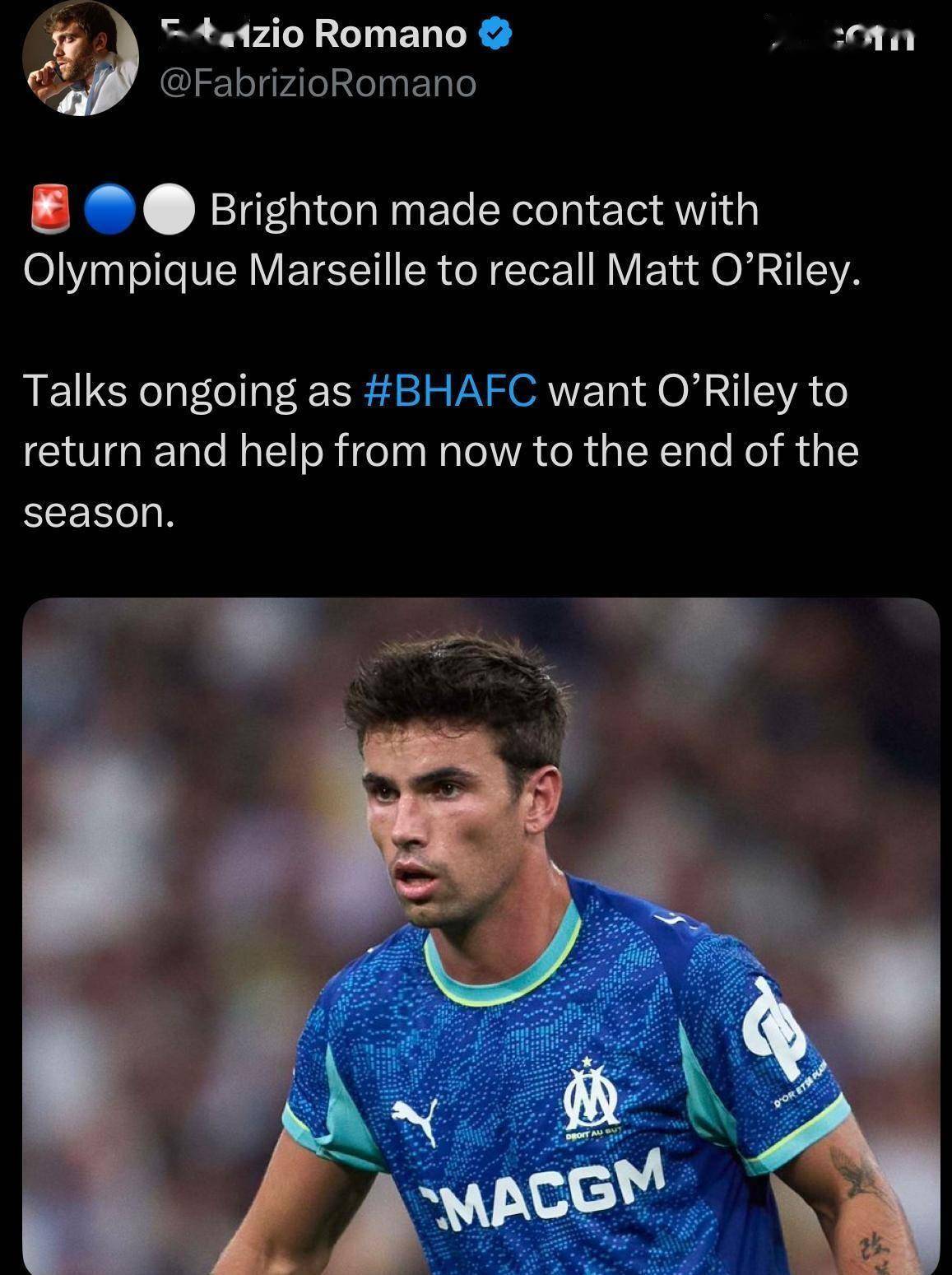 当马特·奥赖利提前结束在马赛的租借,迅速返回布莱顿时,这不仅仅是一次简单的租借终止。 背后是主帅法比安·赫尔泽勒对下半赛季的野心,以及一场关于中场创造力的战略调整。 2500万英镑的身价,25岁的丹麦国脚,本赛季在马赛各项赛事出场25次,这样的球员为何在赛季中途被紧急召回? 奥赖利的回归,很可能成为布莱顿下半赛季中场变阵的关键一步。
